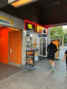 - Gold’s Döner HermannplatzOkay, es gibt noch Hoffnung. Die Karl Marx Straße ist nicht nur eine einzige Baustelle, nein, sie überrascht uns auch mit Schönem: eine nagelneue Dönerbude! Das lassen wir uns nicht zwei Mal sagen und besuchen Gold‘ s Döner am Hermannplatz.