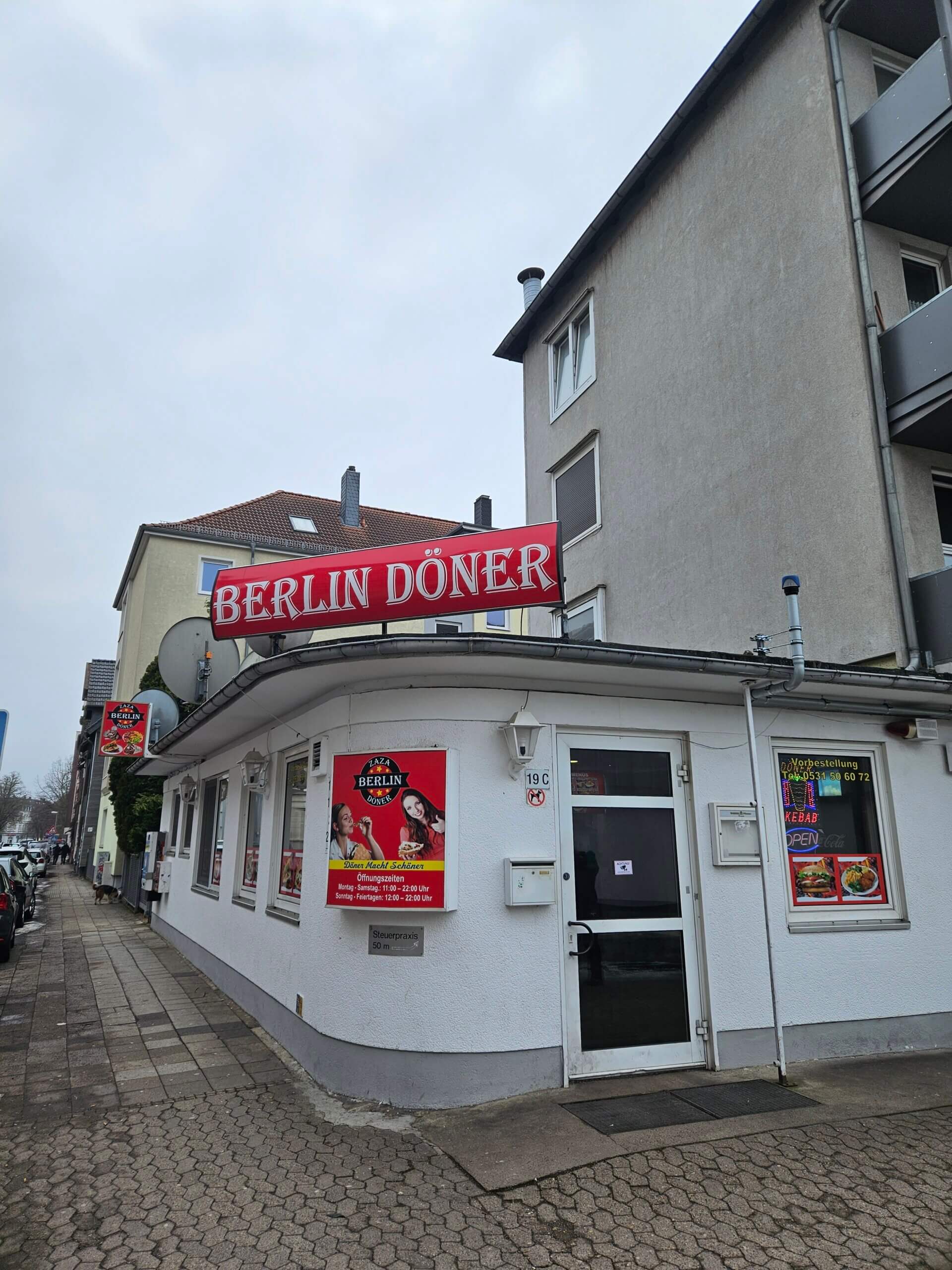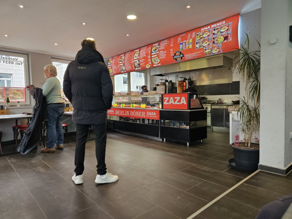 Heute also Ausflug nach Braunschweig. Die Stadt in Niedersachsen ist nicht unbedingt für ihre Schönheit bekannt oder dafür, dass sie unglaublich spannend ist. Aber so schlimm ist sie jetzt auch nicht, bisschen spröde vielleicht. Ich bin jedenfalls mit meinem Kollegen Sam Travis unterwegs und nach getaner Arbeit wackeln wir die zwanzig Meter zu Berlin Döner und machen Mittag.