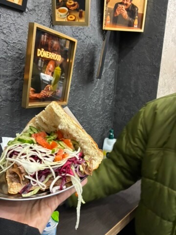 Bei Dönerhood am Innsbrucker Platz hatten wir einen schönen, kalten Abend in einer angenehmen Atmosphäre. Wir wurden freundlich empfangen. Der Döner selbst ist keine Offenbarung, sondern eher guter Durchschnitt. Fleisch und Brot wie gehabt, die Soßen im Hintergrund und der Salat frisch und ansprechend. Preislich fanden wir Dönerhood aber super, denn für zwei Menüs mit Pommes und Getränk und einem Döner plus Getränk zahlen wir gerade mal gute 30 Euro. Das ist doch auch ein Verkaufsargument. Dafür gibt es von uns 3,5 von 5 Dönern. Afiyet olsun.