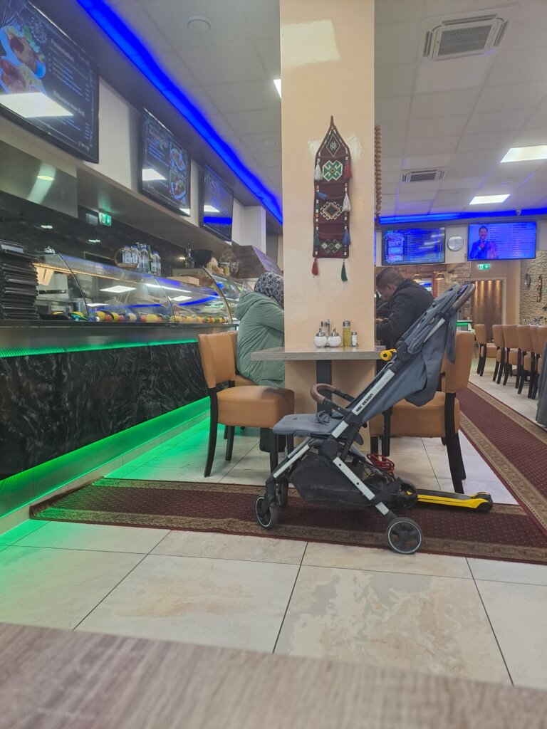 Die Absenz jeglicher städtebaulichen Vorstellungskraft und die spürbare, geistige Leere schlägt uns auf den Magen und wir fühlen plötzlich überdeutlich die Leere in uns selbst. Wir suchen Hilfe bei Memo Döner, doch der hat am zweiten Weihnachtsfeiertag zu. Was für ein Glück, denn so müssen wir zwei Ecken weiter beim Orient Grill einkehren und sind sofort vom gepflegten, einladenden Inneren angetan. Die Tische sind sauber und haben noch nie gewackelt. Die junge Bedienung flitzt an den Tischen vorbei und nimmt schnell und freundlich unsere Bestellung auf. Den Durstlöscher, den mein Sohn dazu bestellt, bringt sie uns tatsächlich an den Tisch!!! Ihr wisst selbst, man muss lange suchen, bis einem so etwas widerfährt.